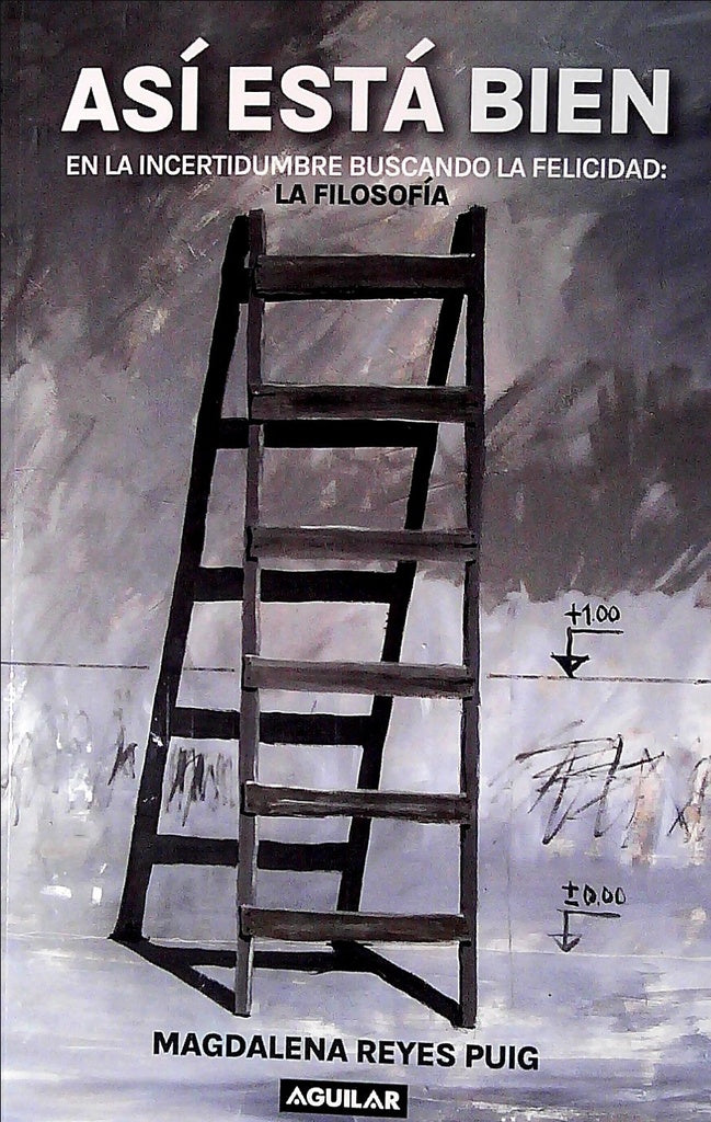 Observemos la portada de Así está bien: esa escalera nos puede ayudar a elevarnos, a cruzar obstáculos, a bajar cuando sea necesario, y hacernos alcanzar cosas que no están a nuestro alcance, como lograr tener una mejor visión de un paisaje complejo para descubrir sendas que nos lleven a nuestro destino. La escalera, al igual que la filosofía, es una herramienta. Esta herramienta es tan antigua como las preguntas que se hicieron Sócrates, Platón o Nietzsche y tan actuales como las preguntas que nos mueven cotidianamente.