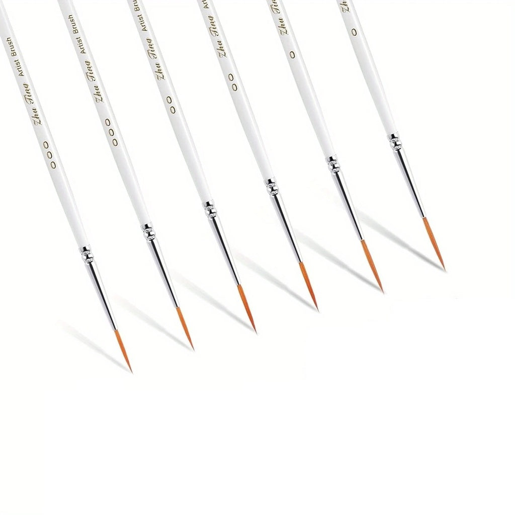 Este set incluye 6 pinceles finos ideales para detalles delicados, con 2 pinceles de tamaño 000, 2 de tamaño 00 y 2 de tamaño 0. Son perfectos para trabajos en acuarela, óleo y acrílico. Gracias a su precisión, son ideales para detalles finos como líneas delicadas, bordes de figuras, retoques y detalles de precisión en diversas técnicas de pintura. También son útiles para trabajos como ilustración, caligrafía y pintura de miniaturas.