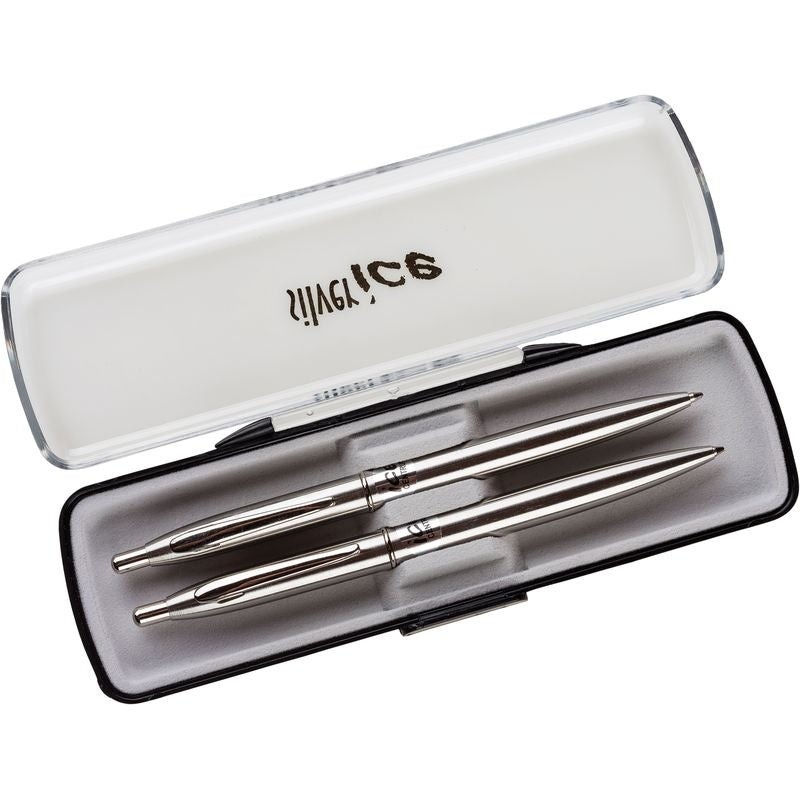 SET SILVER ICE: BOLÍGRAFO DE TINTA AZUL 0.7 MM Y PORTAMINAS 0.5 MM