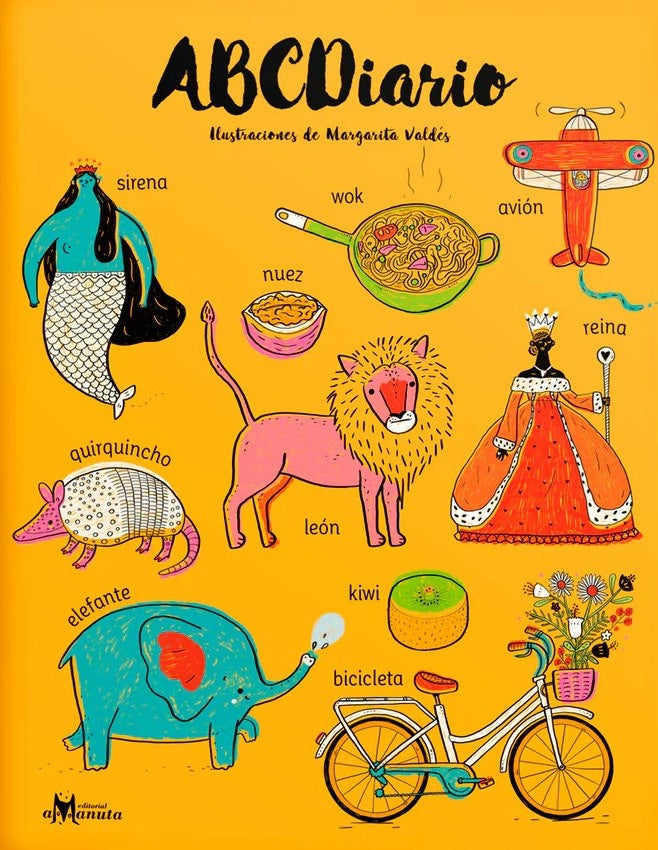 Bitácora para quedarse en casa y viajar al mundo de las letras con un abecedario lleno de palabras, ilustraciones y juegos. Para los que están aprendiendo a leer, esta bitácora contiene varias palabras para cada letra, todas ilustradas para colorear. Animales, instrumentos musicales, objetos de la casa, medios de transporte, personajes como acróbata, detective y bailarina, son algunas de las palabras que se ilustran. Es una bitácora para viajar con la imaginación, en cada página hay un espacio reservado para que cada uno haga de este ABC un diario y escriba una palabra con cada letra y la dibuje. Puede ser real o imaginaria. En las últimas páginas hay juegos para realizar con el ABCDiario. Juegos para practicar la memoria, para ordenar alfabéticamente las palabras, para adivinar palabras. Una bitácora para usarla diariamente.