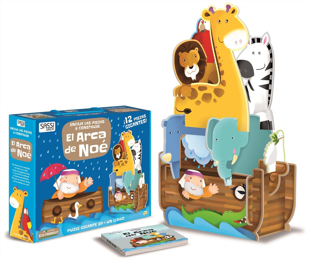 Construye una fantástica arca de Noé y descubre los animales que se salvaron del diluvio universal. Incluye un libro con la historia de Noé y un gran puzzle/maqueta 3D con 12 piezas para montar. Pensado para niños de 3 a 6 años.
