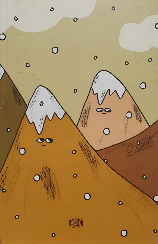 Libreta lisa de con ilustración original de Levedad. Diseño divertido y artístico con montañas animadas y nieve.