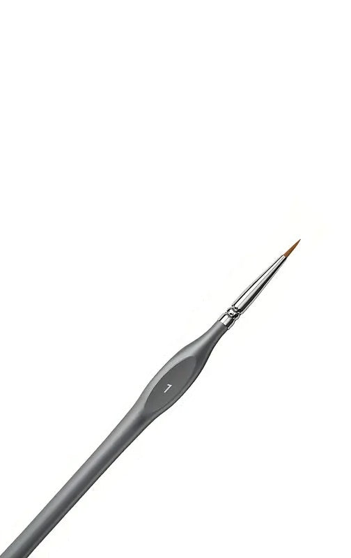 Pincel de detalle Nº1 con cerdas sintéticas suaves y mango ergonómico gris. Perfecto para trazos precisos, contornos, florales o pequeños retoques. Su punta mantiene buena firmeza y flexibilidad, lo que permite trabajar con control sin perder fluidez.