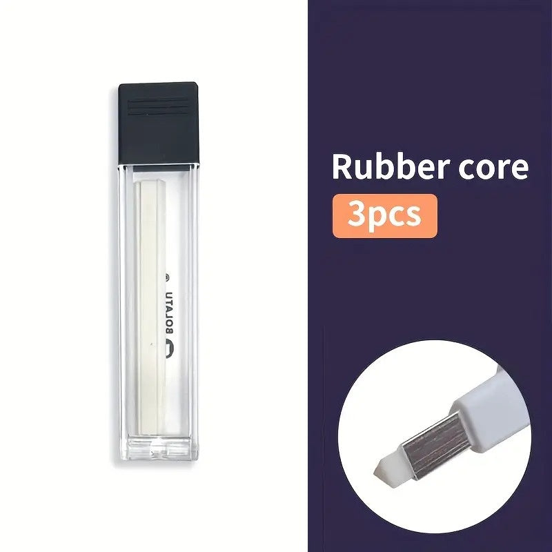 Este set incluye 3 repuestos de goma triangular, diseñados especialmente para portagomas de precisión. Su forma angular permite borrar con gran exactitud incluso en espacios pequeños o detalles finos del dibujo. Ideal para ilustradores, diseñadores, estudiantes y artistas que buscan máxima precisión y limpieza en sus correcciones. Fabricadas con material de borrado suave que no daña el papel.